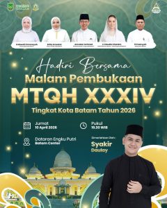 LantakNews.Com. Batam-Pemerintah Kota (Pemko) Batam mengajak seluruh masyarakat untuk turut menyemarakkan pelaksanaan Musabaqah Tilawatil Qur’an dan Hadits (MTQH) XXXIV Tingkat Kota Batam Tahun 2026 yang akan digelar pada 10 hingga 16 April 2026.