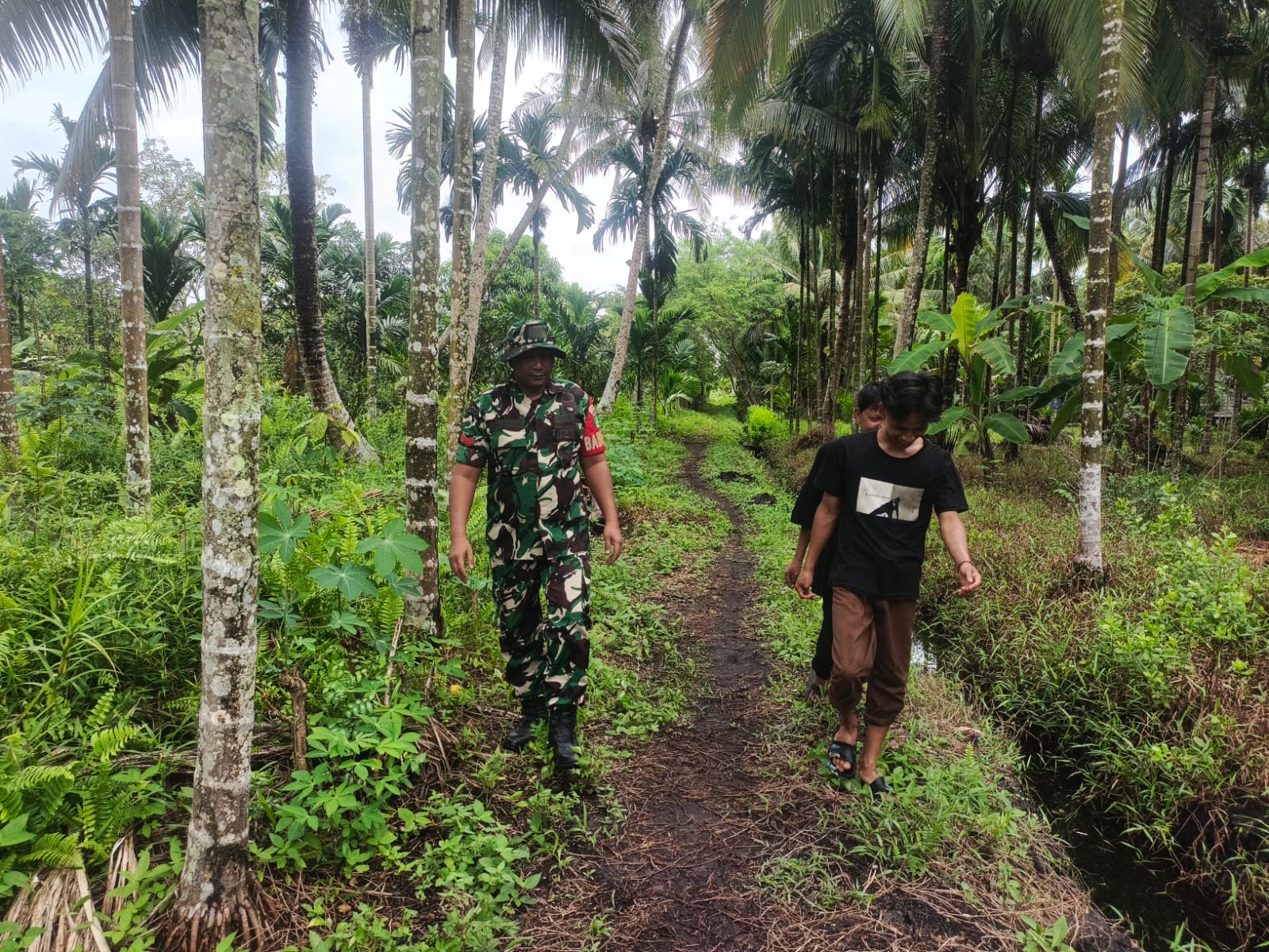 LantakNews.Com. Sungai Guntung_Inhil – Babinsa Koramil 06/Kateman, Koptu Al Alim melaksanakan patroli tapal batas di wilayah Desa Air Tawar, Kecamatan Kateman, Kabupaten Indragiri Hilir, Minggu (5/4/2026).