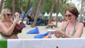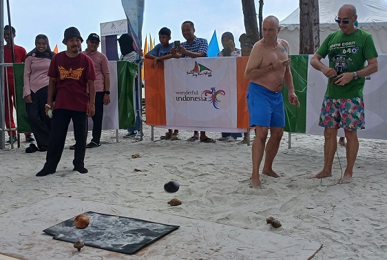 LantakNews.Com. Bintan-Seribuan wisatawan menyaksikan pembukaan Bintan Jong Race Festival 2026 di Beach Lagoi, Bintan Resorts, Kabupaten Bintan, Kepulauan Riau (Kepri), Sabtu (4/4/2026). Tak terkecuali turis mancanegara, atau si bule. Bahkan, bule asal London-Inggris (UK) terpincut atau jatuh hati untuk bermain gasing dan egrang di arena Bintan Jong Race Festival 2026 tersebut.